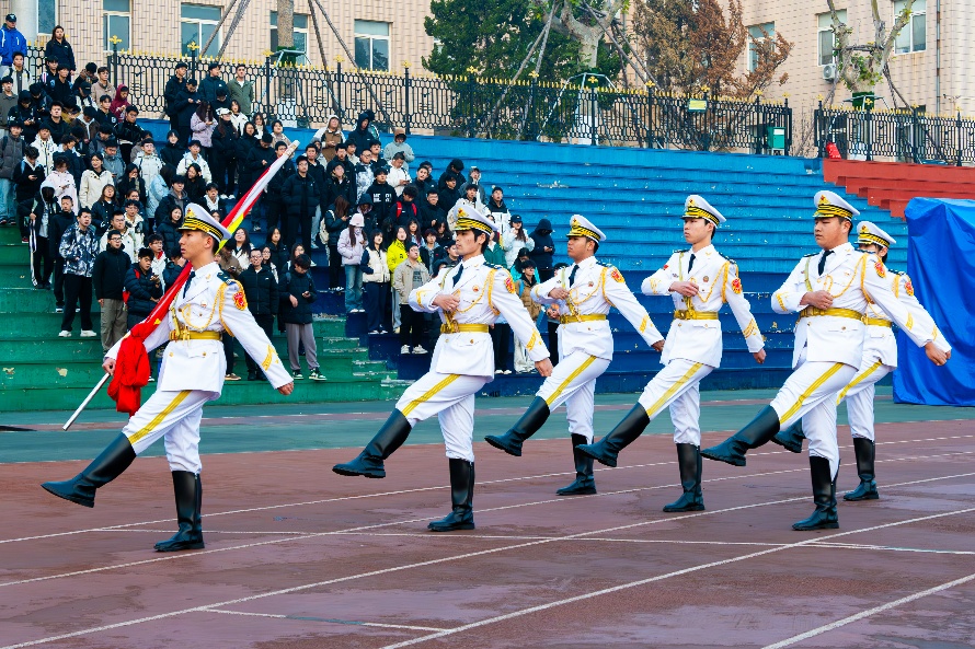 仪式由机制(中新)25-2班主持人朴蘅蕾宣布开始。在全体师生肃穆的注目下,护旗手们迈着铿锵有力的步伐,庄严地护送五星红旗入场。全体人员肃立致敬,高唱国歌,鲜艳的国旗迎着朝阳缓缓升起,飘扬在校园上空。