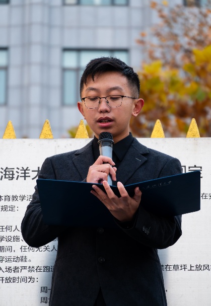 学生代表机制(中新)25-1班佟文博在国旗下发表讲话。他表示,“逐梦深蓝”是中华民族不懈追求的海洋强国梦想,更是新时代青年应有的开阔视野与责任担当;“深耕教育”是培养时代新人、助力民族复兴的核心路径。学生要以青春之我、奋斗之我投身强国建设,在逐梦深蓝的征程中书写教育报国的青春华章。